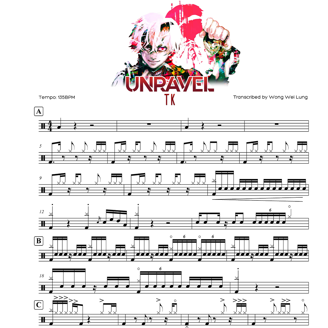 Unravel TK Ling Tosite Sigure Drum Sheet Music Score Transcription
